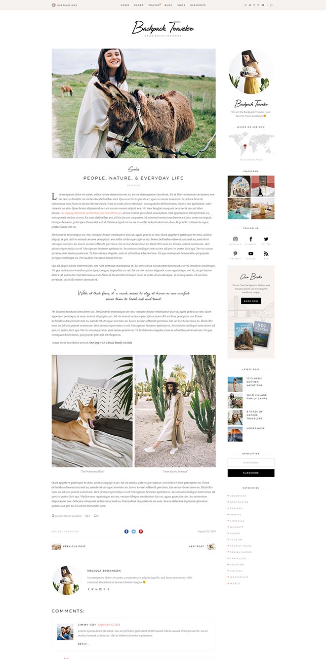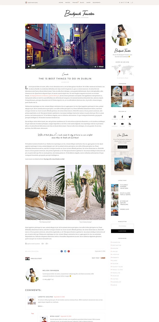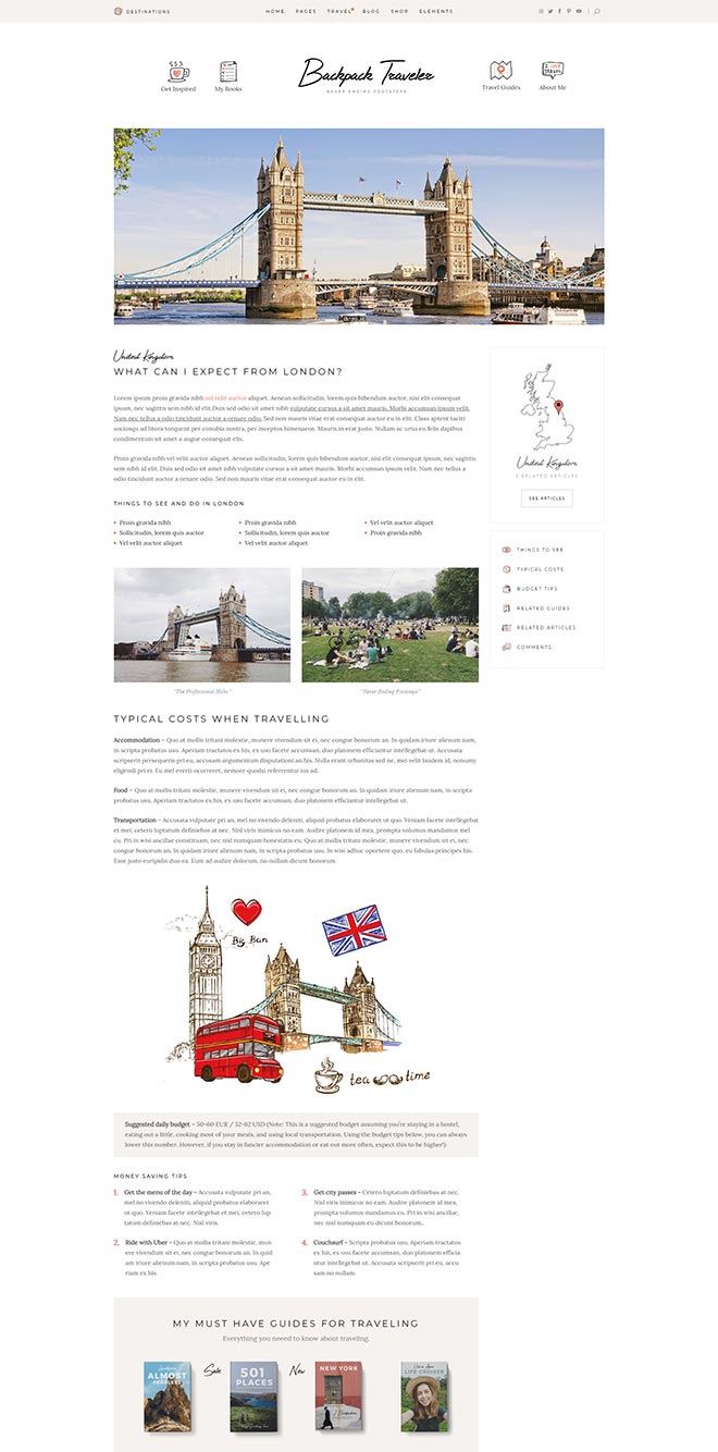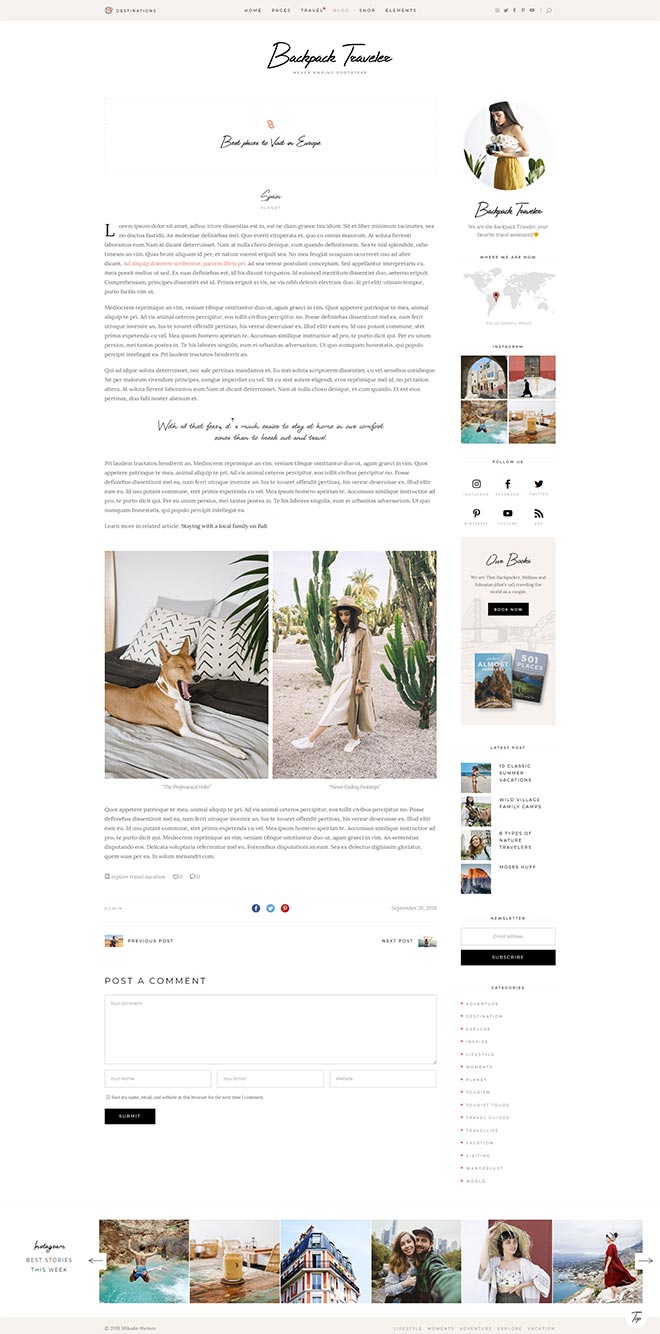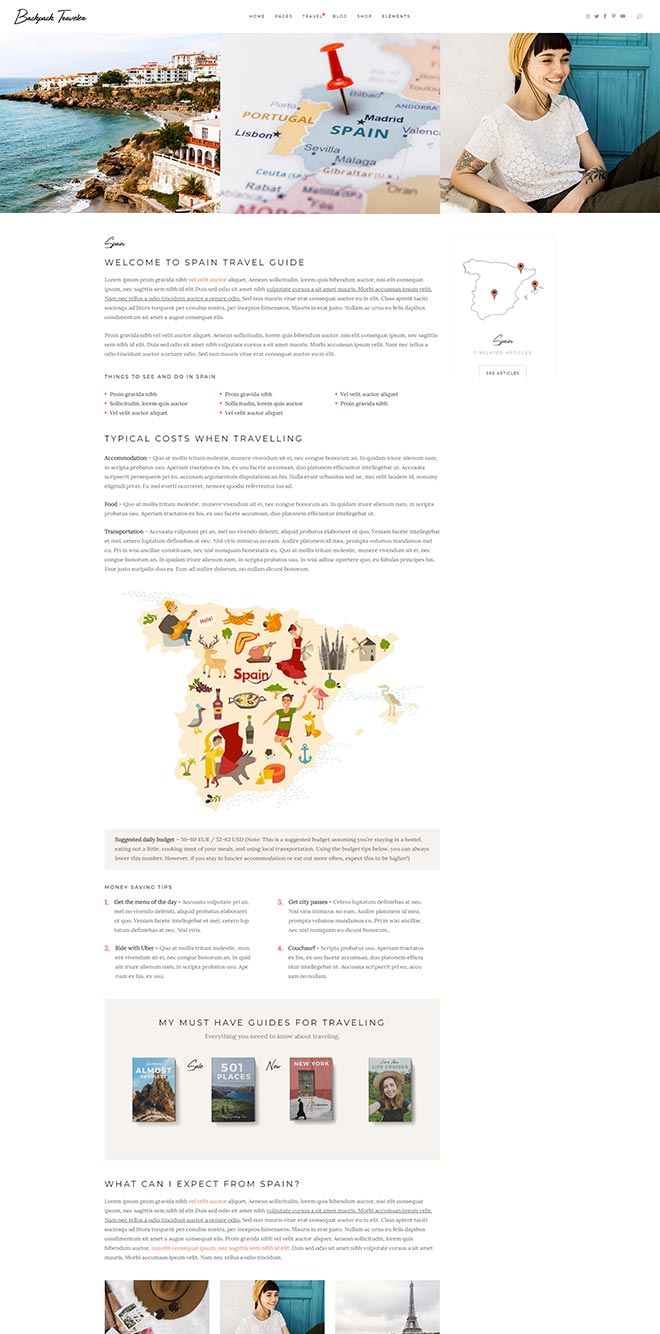 Our theme lets you integrate Google Maps on any of your pages. Not only this, but the maps are fully customizable so you can use the style that fits you the most! You can also easily pin the destinations from your posts right on the map!